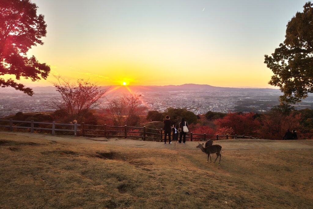 Once reaching Wakakusayama Hill, panoramic views of the entirety of Nara city and Mt.Ikoma will start to unfold before your eyes. If you’re lucky, sometimes you can also see parts of Kyoto from the summit as well.